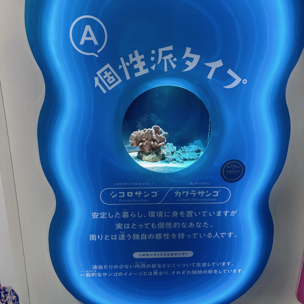 自分がどんなタイプのサンゴか知れる診断もあったのでやってみました。
