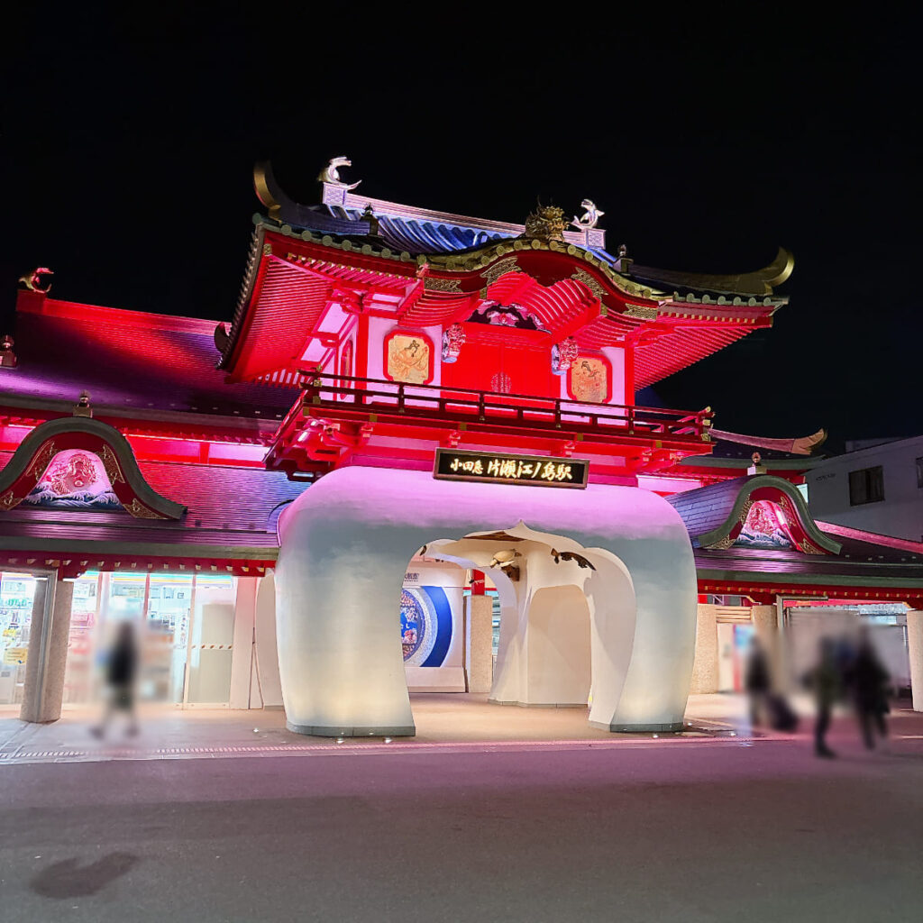 夜の江の島を後にして片瀬江ノ島駅に帰ってきました…こっちもすごい光っている…わお…