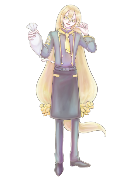 街の小さなお菓子屋さん「cento fiori」のオーナーシェフ。彼が作るお菓子は味はもちろん、見た目も花や動物、たまに謎の生き物?の形をしていて若い女性や家族連れに人気。お客さんの笑顔が好きで、自身もいつもニコニコとしている。