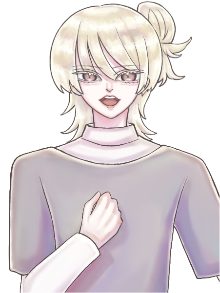 カナダと日本のハーフ。語学に長けていて母国語は英語だが、日本語もスラスラと話せる。フランス語・中国語も少しずつ話せる。真面目というか頭が固い。講義中はメガネをかけるぐらいの視力。パワポを少し凝って作ることとボドゲが好き。映画や読書も好きで、将来は通訳や翻訳家になりたい。